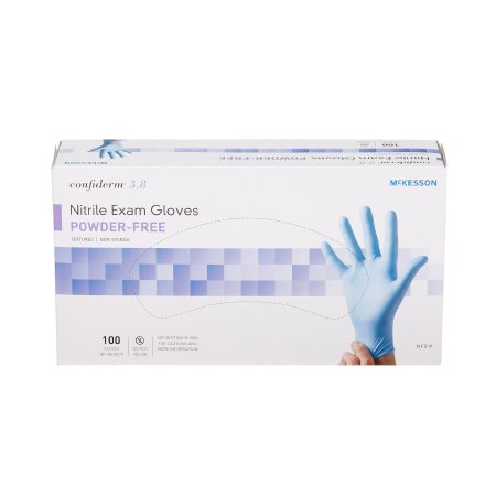 Exam Glove McKesson ConfidermĀ® 3.8 Large NonSterile Nitrile Standard Cuff Length Textured Fingertips Blue Not Rated