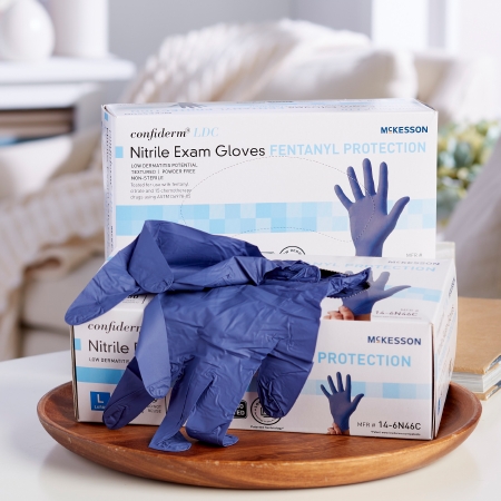 Exam Glove McKesson ConfidermĀ® LDC Large NonSterile Nitrile Standard Cuff Length Fully Textured Blue Chemo Tested / Fentanyl Tested