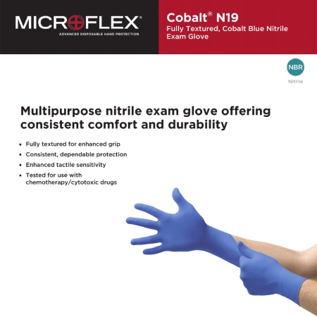 Exam Glove MICROFLEX® Cobalt® Medium NonSterile Nitrile Standard Cuff Length Fully Textured Blue Not Rated