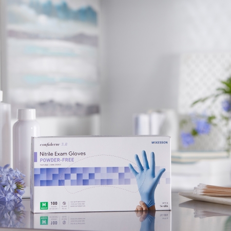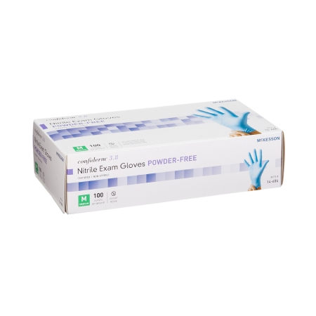 Exam Glove McKesson ConfidermĀ® 3.8 Medium NonSterile Nitrile Standard Cuff Length Textured Fingertips Blue Not Rated