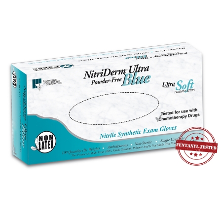 Exam Glove NitriDerm® Ultra Blue Medium NonSterile Nitrile Standard Cuff Length Fully Textured Light Blue Chemo Tested / Fentanyl Tested