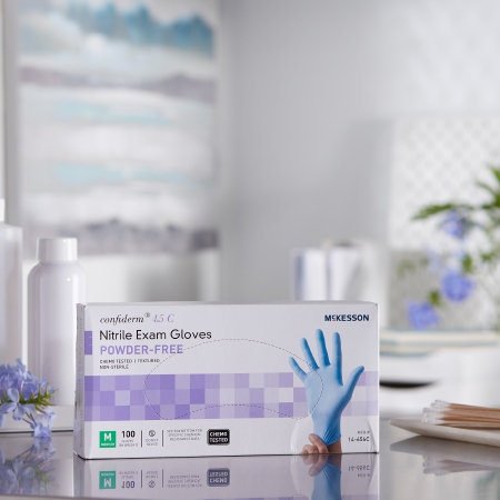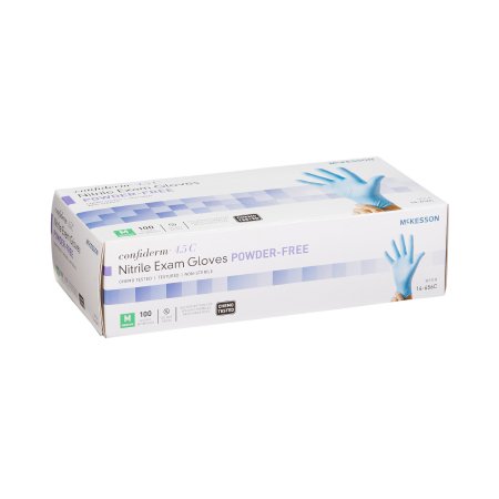 Exam Glove McKesson ConfidermĀ® 4.5C Medium NonSterile Nitrile Standard Cuff Length Textured Fingertips Blue Chemo Tested