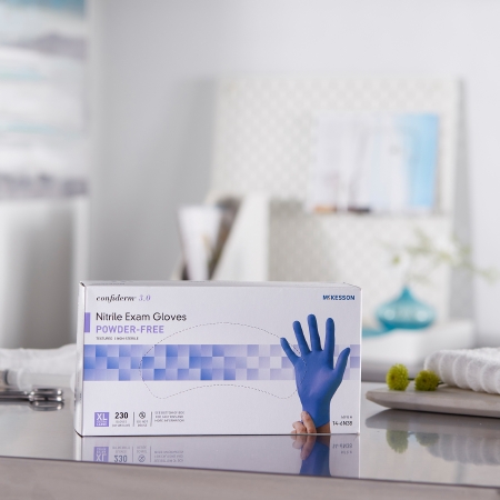Exam Glove McKesson ConfidermĀ® 3.0 X-Large NonSterile Nitrile Standard Cuff Length Textured Fingertips Blue Not Rated