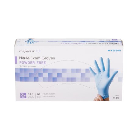 Exam Glove McKesson ConfidermĀ® 3.8 X-Large NonSterile Nitrile Standard Cuff Length Textured Fingertips Blue Not Rated