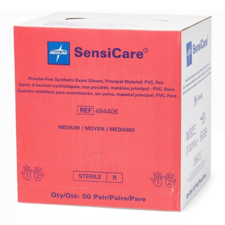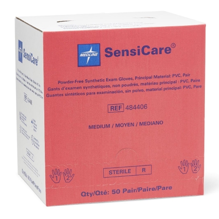 Exam Glove SensiCare® Medium Sterile Pair Stretch Vinyl Standard Cuff Length Smooth Beige Not Rated