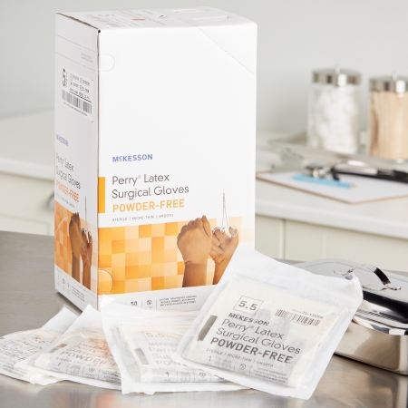 Surgical Glove McKesson Perry® Size 5.5 Sterile Latex Standard Cuff Length Smooth Brown Not Chemo Approved