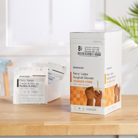 Surgical Glove McKesson Perry® Size 8.5 Sterile Latex Standard Cuff Length Smooth Brown Not Chemo Approved