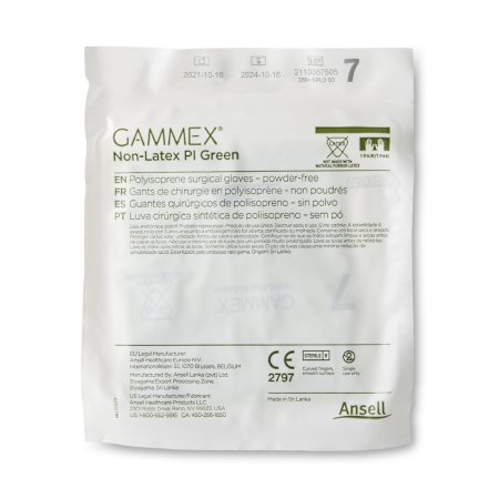 Surgical Glove GAMMEX® Non-Latex PI Green Size 7 Sterile Polyisoprene Standard Cuff Length Micro-Textured Light Green Chemo Tested