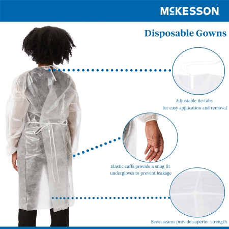 Protective Procedure Gown McKesson One Size Fits Most White NonSterile Disposable