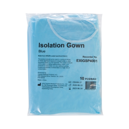 GOWN ISO PE COATED SPUN BOND BLU LGE 40GSM (10/BG 10BG/CS)