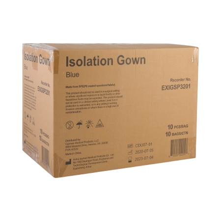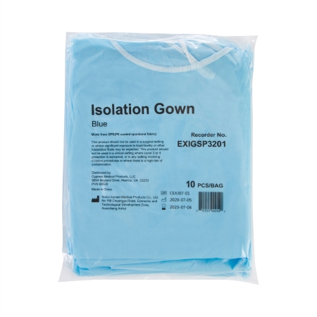 GOWN ISOLATION PE COATED SPUNBOND BLU 32GSM (10/BG 10BG/CS)