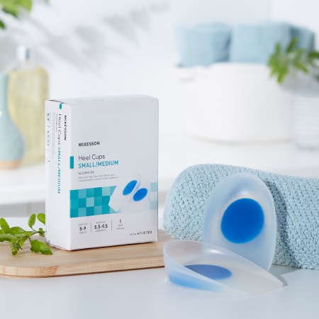 Heel Cup McKesson U-Shaped Silicone Gel Male 5 to 9 / Female 5-1/2 to 9-1/2 Blue / Transparent