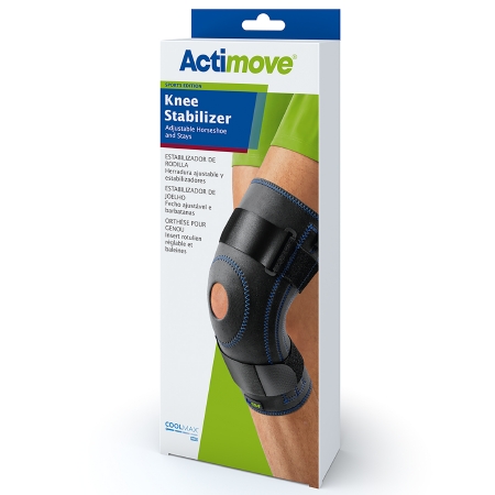 KNEE STABILIZER ADJ HORSESHOE/STAYS HME ACTMV BLK LG18″-20″