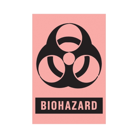 Pre-Printed Label Timemed Caution Label Fluorescent Red Paper Biohazard / Symbol Black Biohazard 2 X 3 Inch