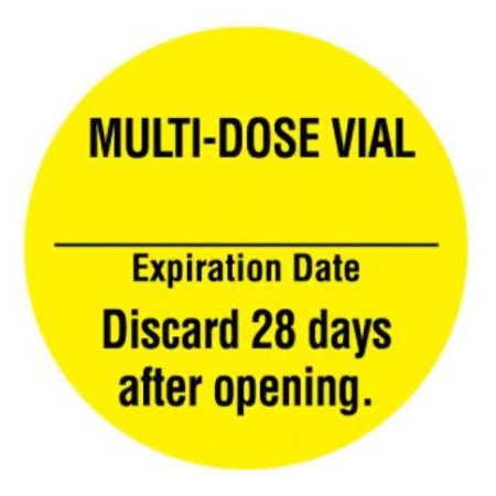 Pre-Printed Label UALâ„¢ Anesthesia Label Yellow Paper Multi-Dose Vial Expiation Date Discard 28 Days after opening Black Syringe Label 1 Inch Diameter