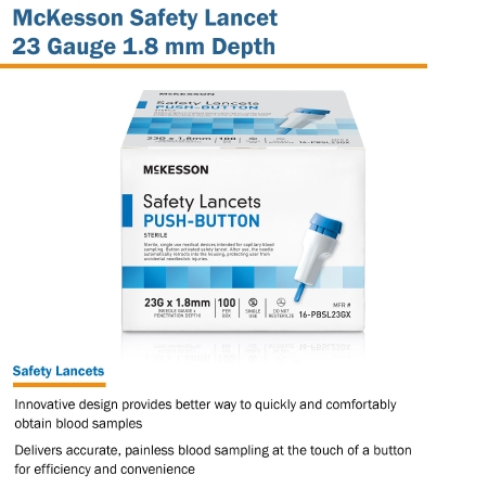 LANCET SAFETY PUSH-BUTTON 23GNDL 1.8MM LF BLU (100/BX 20BX)