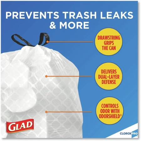 Trash Bag GladĀ® 13 gal. White Plastic 0.72 mil 12 X 24 Inch Dispenser Box