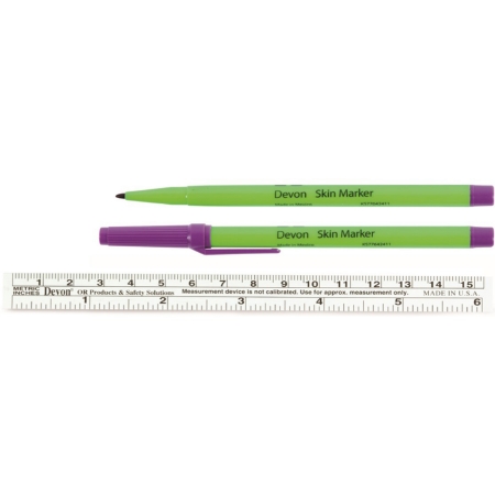 Skin Marker with Ruler and Labels Devon™ Gentian Violet Ink Sterile Full Size Regular Tip