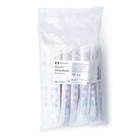 Medical Utility Marker with Labels Devon™ Permanent Black Ink Sterile Full Size Fine Tip