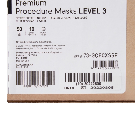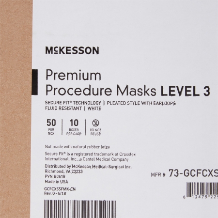 Procedure Mask with Eye Shield McKesson Anti-fog Strip ASTM Level 3 Earloops One Size Fits Most