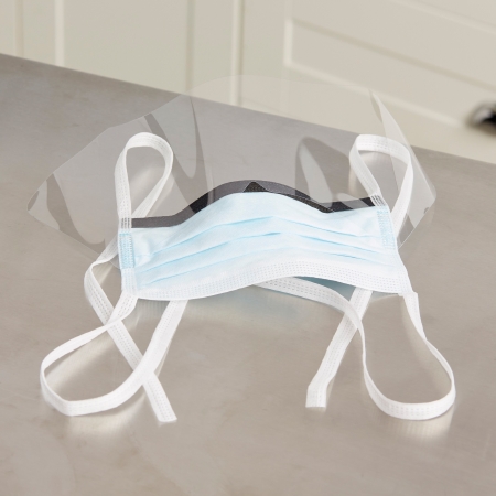 Surgical Mask with Eye Shield McKesson Anti-fog ASTM Level 3 Tie Closure One Size Fits Most