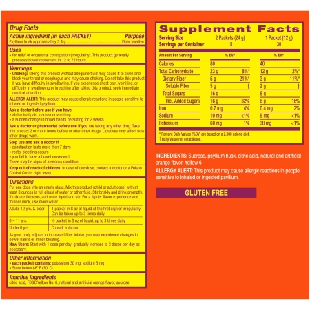 Fiber Supplement Metamucil® Orange Flavor Powder 30 per Box 3.4 Gram Strength Psyllium Husk