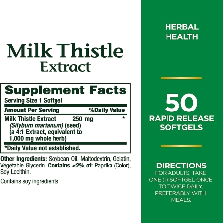Dietary Supplement Nature’s Bounty® Milk Thistle 1 000 mg Strength Capsule 50 per Bottle