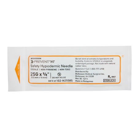 Safety Hypodermic Needle McKesson PreventĀ® HT 5/8 Inch Length 25 Gauge Ultra Thin Wall Hinged Safety Needle