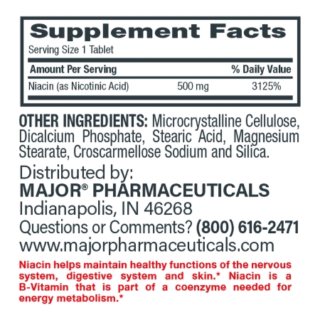 Dietary Supplement MajorĀ® Niacin 500 mg Strength Tablet 100 per Bottle