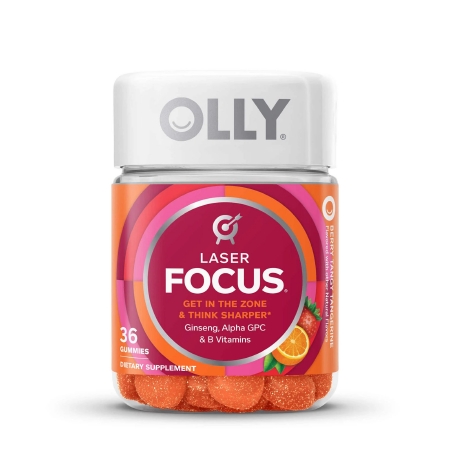 Dietary Supplement OLLY® Laser Focus B6 / B12 / Ginseng / Alpha GPC 2 mg – 50 mcg – 100 mg – 20 mg Strength Gummy 36 per Bottle Berry Tang Flavor