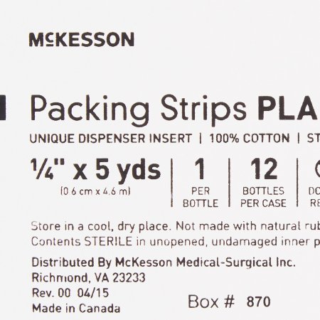 Wound Packing Strip McKesson Non-Impregnated 1/4 Inch X 5 Yard Sterile Plain