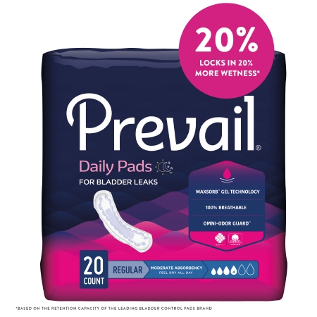 Bladder Control Pad PrevailĀ® Daily Pads 9-1/4 Inch Length Moderate Absorbency Polymer Core One Size Fits Most