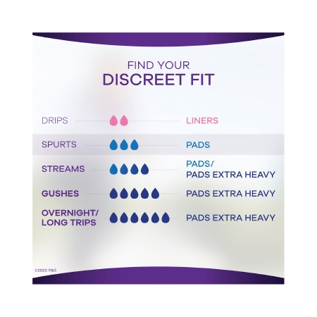 Bladder Control Pad Always® Discreet 13-1/2 Inch Length Moderate Absorbency Absorbent Gel Core One Size Fits Most