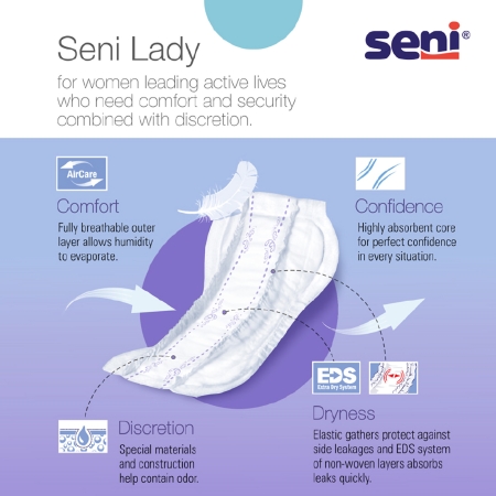 Bladder Control Pad SeniĀ® Lady Light 8.9 Inch Length Light Absorbency Super Absorbent Core One Size Fits Most
