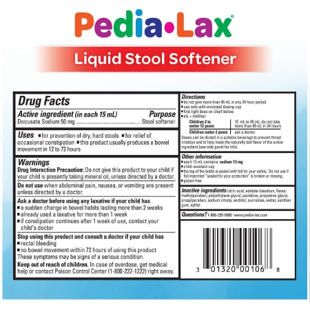 Stool Softener Pedia-Lax® Fruit Punch Flavor Liquid 4 oz. 50 mg / 15 mL Strength Docusate Sodium