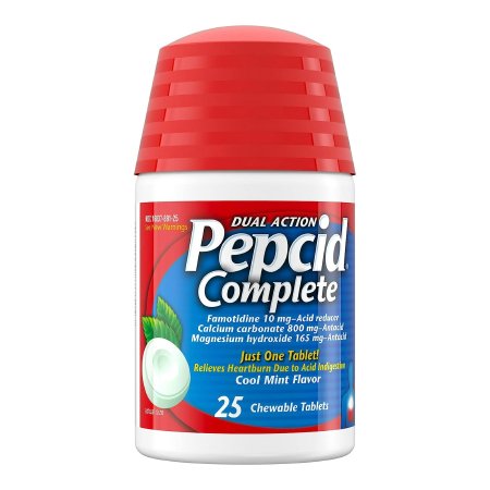 Antacid Pepcid® Complete 800 mg – 165 mg – 10 mg Strength Chewable Tablet 25 per Bottle