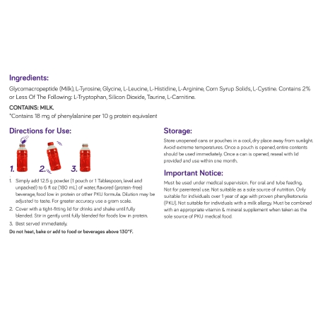Oral Supplement PhenylAde® GMP Mix-In Unflavored Powder 12.5 Gram Individual Packet