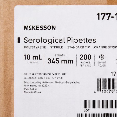 McKesson Serological Pipette 10 mL 0.1 mL Graduation Increments / 2.5 mL Negative Graduations Sterile