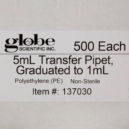Globe Scientific Transfer Pipette 5 mL 0.25 mL Graduation Increments NonSterile