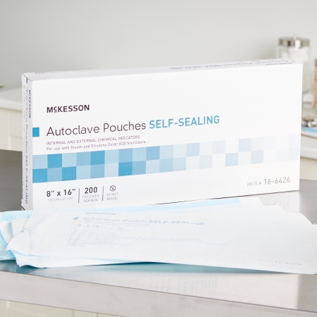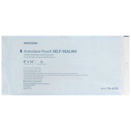 Sterilization Pouch McKesson Ethylene Oxide (EO) Gas / Steam 8 X 16 Inch Transparent Blue / White Self Seal Paper / Film