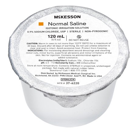Irrigation Solution – OTC McKesson 0.9% Sodium Chloride Not for Injection Foil-Lidded Cup 120 mL