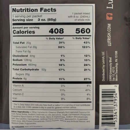Oral Supplement Lutrish Chocolate Flavor Powder 3 oz. Individual Packet