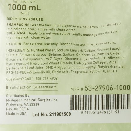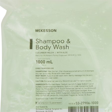 Shampoo and Body Wash McKesson 1 000 mL Dispenser Refill Bag Cucumber Melon Scent
