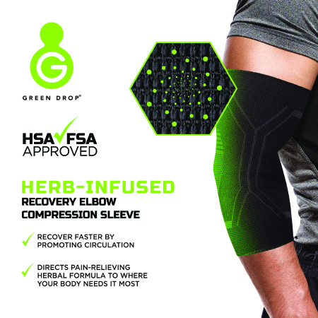 Elbow Support Green Drop™ Small / Medium Pull-On Sleeve Left or Right Elbow 8 to 12 Inch Elbow Circumference Black