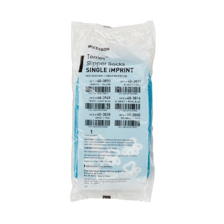 Slipper Socks McKesson Terries™ Unisex Adult Large Single Tread Single Patient Use Teal