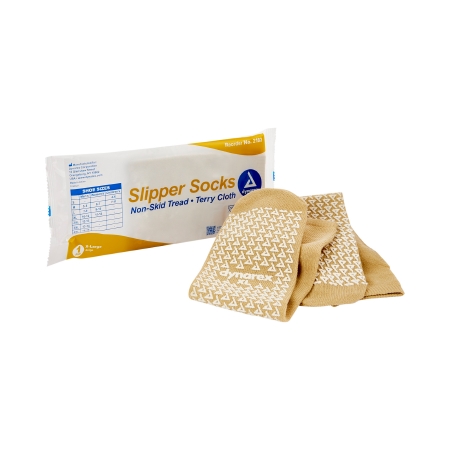 Slipper Socks Dynarex Unisex Adult X-Large Single Tread Single Patient Use Beige