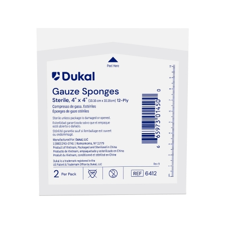 Gauze Sponge Dukal™ 4 X 4 Inch 12-Ply Sterile 2 per Pack