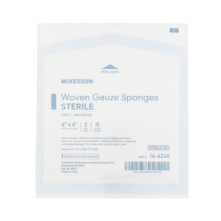 Gauze Sponge McKesson 4 X 4 Inch 8-Ply Sterile 2 per Pack