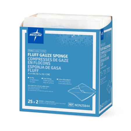 SPONGE GAUZE FLUFF STR LF 12PLY 4X4″ (2/PK 25PK/BX)