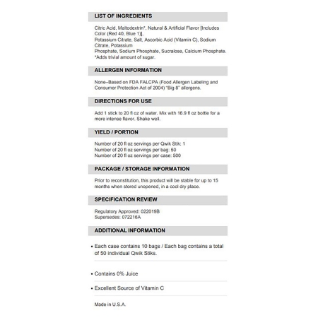 Oral Electrolyte Solution Sqwincher® Quik Stik® Zero Fruit Punch Flavor 0.11 oz. Electrolyte
